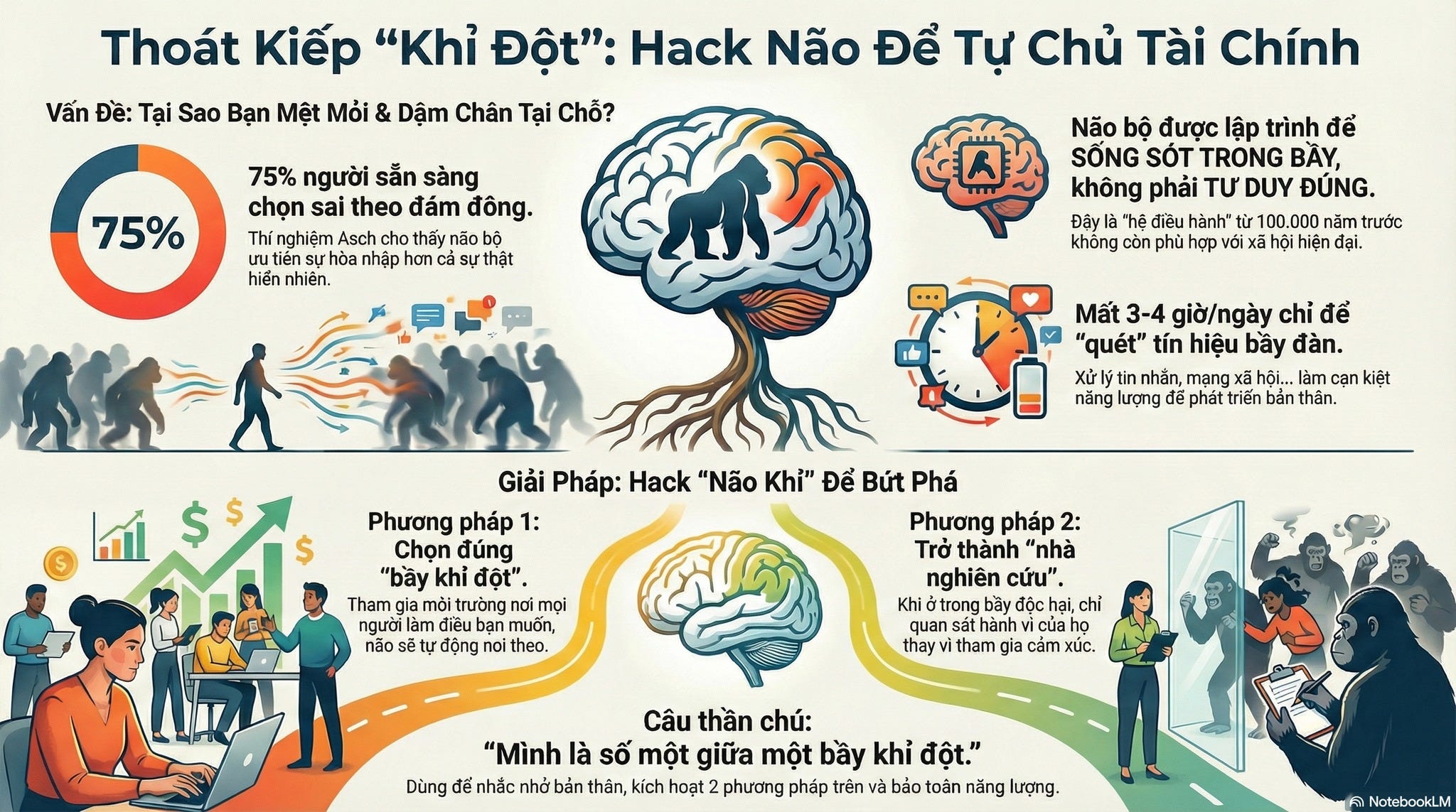 Vào một ngày đẹp trời nào đó của năm 2026, có thể anh em sẽ ngẫm lại và nhận ra bản thân mình đã vượt mốc 50 triệu (và có thêm nguồn thu 20-30 triệu/tháng), mà không cần ý chí sắt đá hay thay đổi tính cách gì cả. Chỉ cần chuyển từ “làm khỉ đột giỏi trong bầy sai” sang “làm khỉ đột giỏi trong bầy đúng” mọi thứ đã thay đổi hoàn toàn.