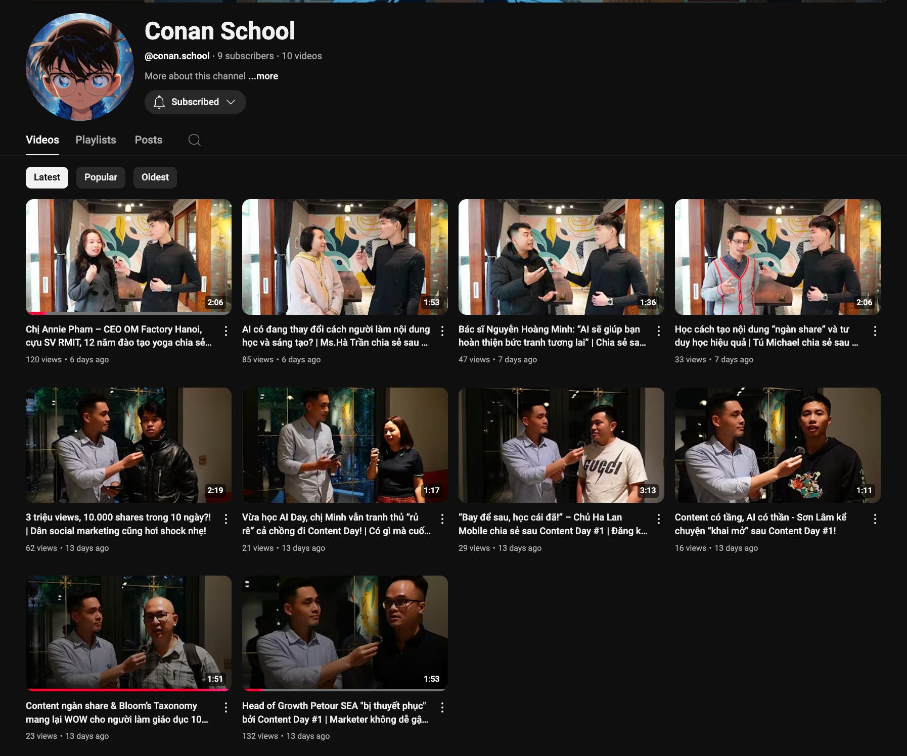 Và thế là kênh YouTube của Conan School ra đời – như một cuốn nhật ký điều tra tri thức, với nhân vật chính không phải chuyên gia… mà chính là người học.