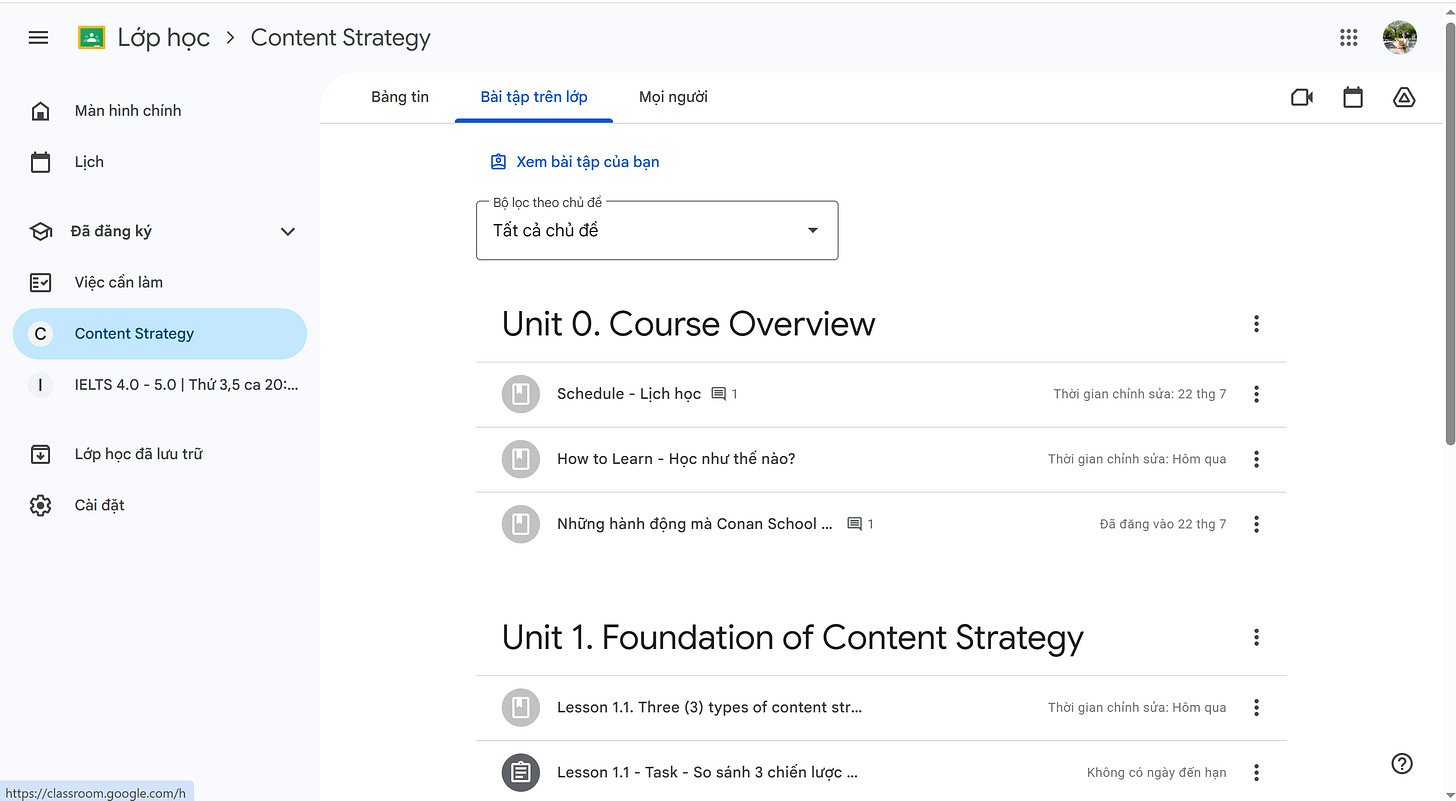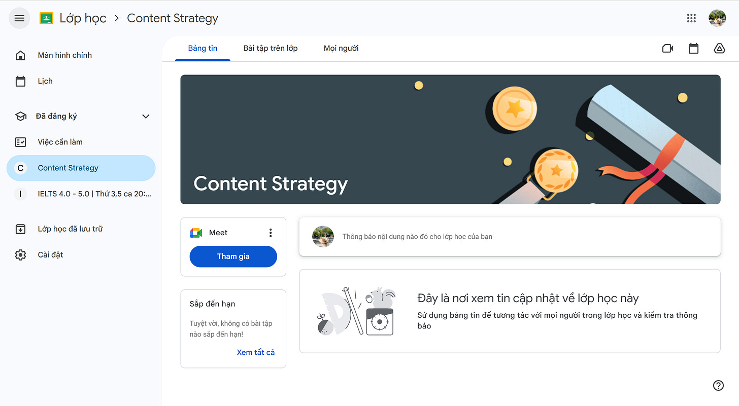 Google Classroom chính là “ngôi nhà chung” cho toàn bộ hành trình học Content Strategy của bạn. Hãy bắt đầu từ việc hiểu cách học, và để các bài học sau đó trở nên dễ tiếp thu hơn. Nếu có vướng mắc nào, bạn không cần loay hoay một mình — team luôn sẵn sàng hỗ trợ.