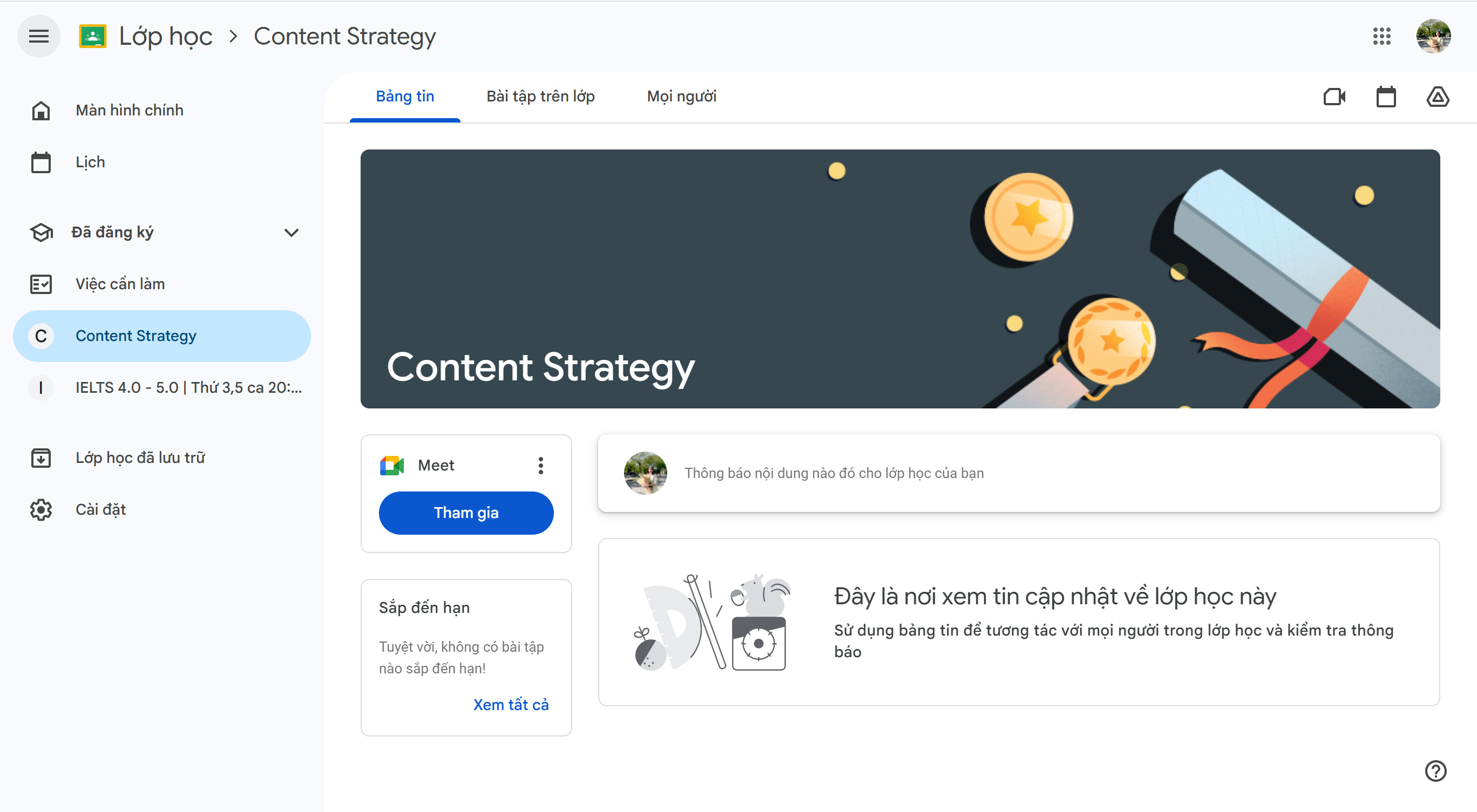 Là nơi giảng viên đăng thông báo hoặc gửi link tham gia Google Meet (nếu có buổi học trực tiếp).