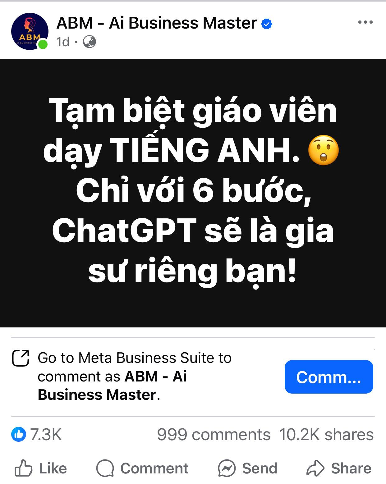 - Bài viết viral lần 3 - Bài viết ngắn, cách học tiếng Anh với GPT (Đạt 1.066.549 views, 5,4k share và 2,9k like) → Phù hợp trend về phát triển ngôn ngữ tiếng Anh, đề thi đại học khó.